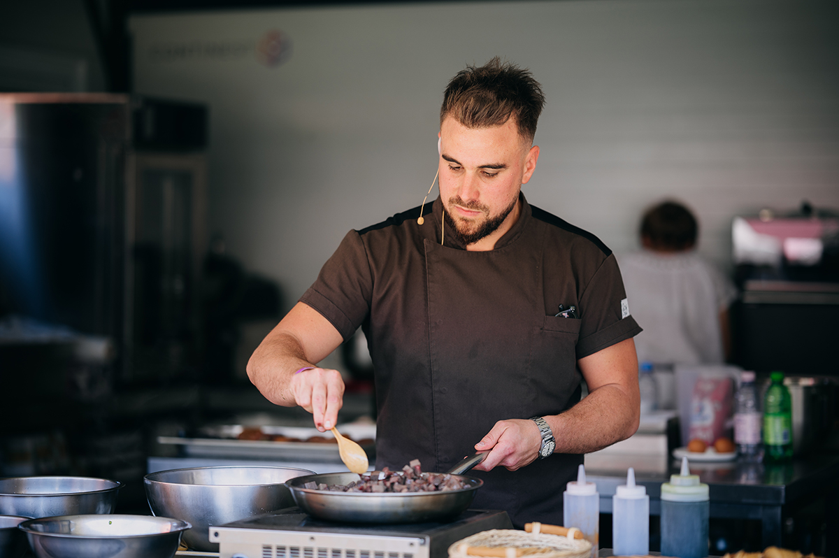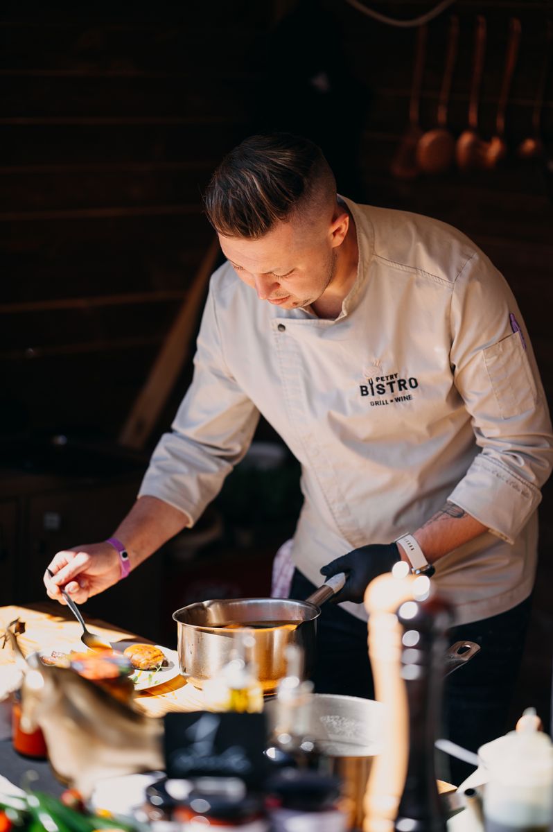 A péntek délelőttöt töltöttük Balázs Árpád fotós kollégámmal a Taste of Transylvanián, Gyimesben. Már-már veteránként tértünk vissza a fesztiválra, harmadszor jártuk be, dolgoztuk le a fesztivált kettesben, kiismertük jól magunkat. Nem direkt választottuk ezt a napot, mégis úgy jött ki, hogy lapunk több szakácsának előadását, főztjét is meg tudtuk ízlelni, a több tíz izgalmasabbnál izgalmasabb fogás mellett.