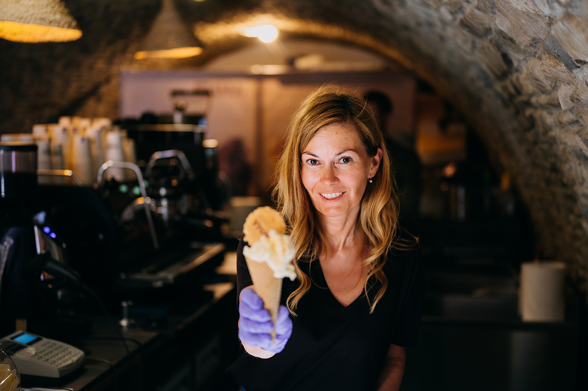 A különböző ízes fogások után Árpáddal valami édesre vágytunk, így a brassói Emma La Dolce olasz kézműves fagylalt és édességek háza kiállítóhelyét kerestük fel. Ahogy Salamon Sarolta, az Emma La Dolce megálmodója és vezetője elmondta, ők az idei Taste of Transylvania fagylalt- és kávépartnerei. Fagylaltban próbálták a tájjellegnek, a helyi ízeknek és alapanyagoknak különböző kombinációit összehozni, így készült el az ordás-kapros, a meggyes-mákos, a madártejes, az almás pités, illetve a gyermekkor klasszikus aromáját felidéző málnahabos fagylalt. Kávéban klasszikus termékek, helyi specialitások nem nagyon tudnak lenni, de azért elhoztak egy újdonságot a fesztiválra. Ahogy Sarolta kiemelte, az olaszoknak sincs saját kávéjuk, csak a jó marketing miatt létezik „eredeti olasz kávé”. Ezt a mintát követve, az Élő Erdély Egyesülettel karöltve létrehoztak egy új brandet, az Erdély Cafét, amelynek készítettek már egy saját, specialty minősítésű kávéblendet, amit a fesztiválon az érdeklődők is megízlelhettek.