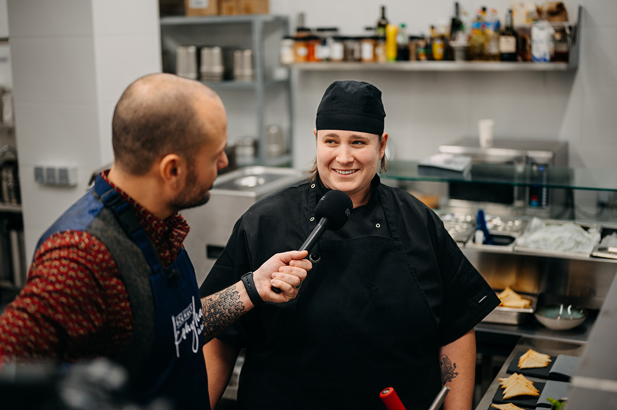 Bakcsi Zsuzsanna a tálalásért felelős sous-chef: a beérkező rendeléseket leadja a kollegáknak, az érkező ételt pedig feltálalja, kiegészítő elemekkel – csipszek, ropogós magvak, fűszersók, saláták, olajok, krémek – vagy éppen spenótszivaccsal teszi teljessé azokat. Zsuzsi tíz éve dolgozik konyhán, vallja: ezt a szakmát csak elhivatottsággal lehet végezni. A legtöbbet a házikolbász-krokettel kísérletezett a menüsor összeállításakor, a krokett alá kevés tárkonyos krumplikrém, mellé, savas elemként, homoktövisgél került – igazi székely ízek, meglepő, izgalmas, de tökéletes összeállítása.