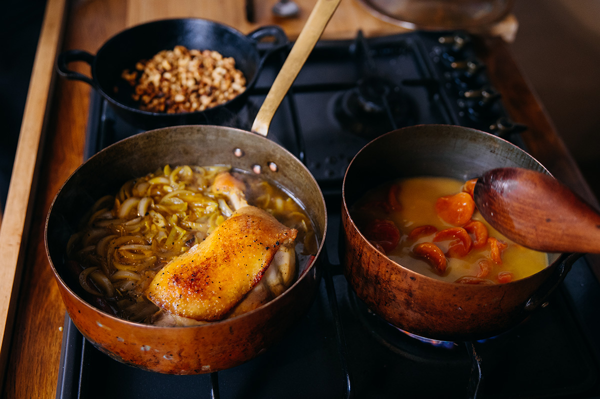 Szakácsunk, Előd és műsorvezetőnk, Ottó az aszalt barackos és sáfrányos csirke elkészítését mutatja be a Székely Konyha és Kert ünnepi műsorában. Ezt a fogást közel-keleti receptek inspirálták, és a fahéjjal, gyömbérrel, citrommal és fenyőmaggal is ízesített étek méltán kerülhet az ünnepi asztalra, hiszen az aszalt barack édes-savanyú harmóniája teszi különlegesen frissé, derűssé.