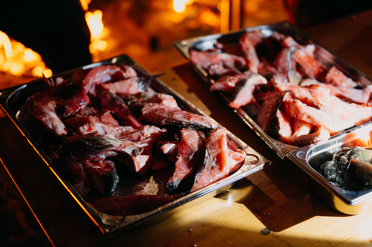 A Drávaközben adott a folyami hal, így Munk Erik gyakran készíti ezt az ízletes étket pontyból, harcsából, csukából, kárászből, kecsegéből, s vallja, minél több halfajta kerül egy halpaprikásba, annál finomabb az. Madéfalván azonban csak pontyból készült ez a fogás, összesen hatvan kiló pontyot hozott magával, amelyet nagyjából hétkilós porciókba kiadagolva, összesen nyolc üstben készített el. Mint megtudtuk, a halászlé esetében nem igaz, hogy minél nagyobb mennyiségben készül, annál finomabb, hiszen a jó halászlé titka az, hogy folyamatosan kell nagy lángon főjön, ezt pedig kisebb mennyiséggel egyszerűbb elérni. A fa tekintetében a vörös fűzre esküszik a halászléfőző-mester, mint fogalmazott: „Amit a Duna kidob a partra, azt összeszeded, megszárítod, annál jobb nincsen!”
