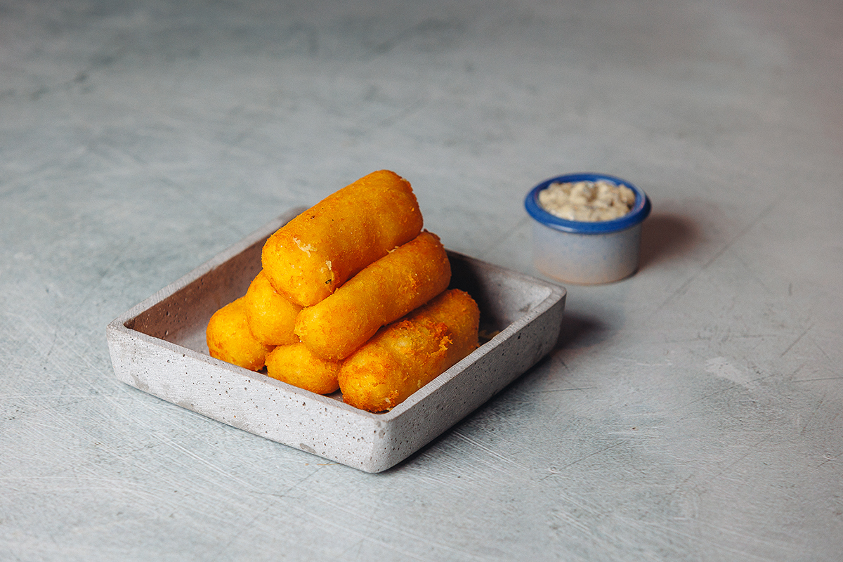 Ez az étel fogyasztható melegen, de akár hidegen, előételként is. Jól illik hozzá egy kis tárkonyos mártogató. Ehhez egy keverőtálban a tojássárgáját összekeverjük a mustárral, kissé megsózzuk, majd folyamatos kavarás mellett fokozatosan hozzácsurgatjuk az olajat. Amint kész, belekeverjük a tejfölt és a felaprított ecetes tárkonyt. Figyeljünk arra, hogy a hozzávalók lehetőleg egyforma hőmérsékletűek legyenek. A krokett elkészítésekor a lisztet hozzákeverjük a megdermedt krumplipüréhez, annyit, amennyit felvesz és formázhatóvá válik, ízlés szerint fűszerezzük a szerecsendióval, majd kis rudacskákat vagy gombócokat formázunk belőle. Pár percig állni hagyjuk, majd lisztbe forgatjuk és forró olajban aranybarnára sütjük. Törlőpapírra szedjük ki, majd a tárkonyos mártogatóval tálaljuk. Használhatjuk köretként is.