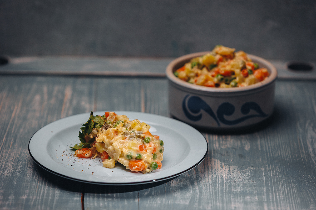 Ez az étel a vasárnapi ünnepi asztal egyik meghatározó fogása, hiszen az ünnepi menüben rendszerint szerepel húsleves. Valószínűleg ez a recept is ebből a levesből merít ihletet, hiszen a benne főtt zöldségeket és húst használjuk fel. A megfőtt és kihűlt zöldségeket, valamint a húst kis kockákra vágjuk, és egy keverőtálba tesszük. Sózzuk, borsozzuk. A tojássárgájából, mustárból és olajból majonézt készítünk, majd ezt is a felkockázott hozzávalókhoz keverjük. Megszórjuk finomra vágott petrezselyemmel, és ha szükséges, utánfűszerezzük.