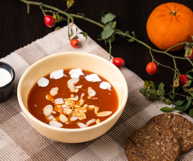 A megtisztított csipkebogyót megmossuk, ráöntjük a vizet, és mintegy harminc percig főzzük, majd átpasszírozzuk. A nehéz munka nyomán nyert levet fazékba töltjük, majd hozzáadjuk a cukrot, a narancs héját és a levének a felét, illetve a vaníliát, és öt perc alatt összefőzzük. Narancskarikákkal, pirított mandulával és tejszíncseppekkel díszítve tálaljuk.