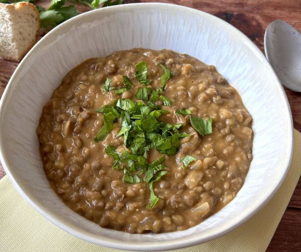 A lencsét éjszakára áztassuk annyi hideg vízbe, amennyi ellepi, majd másnap folyó víz alatt mossuk át. A megtisztított hagymát vágjuk finomra, majd kevés olajon dinszteljük üvegesre. Ezután dobjuk rá a fokhagymát és a lencsét, keverjük át, majd öntsük fel annyi vízzel, amennyi ellepi. Sózzuk, borsozzuk, adjuk hozzá a babérlevelet, fűszerpaprikát és főzzük puhára. Adjuk hozzá a tárkonyt. A tejszínt a mustárral és a liszttel keverjük simára, majd adjuk a főzelékhez, és pár perc alatt forraljuk össze. Tükörtojás, pirított virsli vagy sült kolbász illik hozzá.