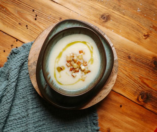 A krumpli egynegyed részét 2 × 2 cm-es kockákra vágjuk, ez lesz a levesbetét. Épp annyi sós vízben főzzük meg, amennyi ellepi. A maradék krumplit és a hagymát felszeleteljük, felhevített olaj és vaj keverékén megdinszteljük, felöntjük az alaplével és puhára főzzük, majd botmixerrel turmixolni kezdjük. A művelet közben kisebb adagonként hozzáadjuk a túrót, majd a tejet és a tejfölt. (Ajánlott hőkiegyenlítéssel.) Ha kellően krémes, hozzáadjuk a levesbetétet, indokolt esetben főzővízzel együtt. Kaporolajjal vagy más fűszerolajjal tálalhatjuk.