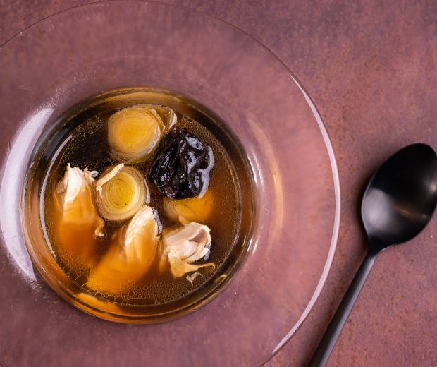 Ez nagyon egyszerű recept, amely más dimenzióba helyezi a maradék hétvégi húslevest. Az aszalt szilvát egy órára áztassuk be egy kevés húslevesbe. A csirkemellet vágjuk fel szeletekre, a póréhagymát karikázzuk fel egycentis korongokra, és együtt főzzük bele a levesbe. A végén adjuk hozzá az aszalt szilvát, pár percig főzzük együtt, majd tálaljuk.