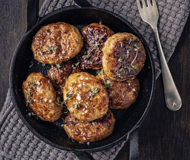 Hámozzuk meg a krumplit, majd reszeljük le nagy lyukú reszelőn, és hagyjuk állni. Addig pucoljuk meg a hagymákat, a vöröset vágjuk finomra, a fokhagymát reszeljük le. A krumpliból nyomkodjuk ki a nedvességet, majd keverjük hozzá a fasírt minden hozzávalóját, gyúrjuk össze a masszát. Formázzunk a húsból tetszőleges pogácsákat. Közben forrósítsunk egy kevés olajat egy serpenyőben, tegyük bele a húspogácsákat, majd oldalanként kb. 4-5 percig süssük (a méretétől függően). Friss zöldségsalátával tálaljuk.