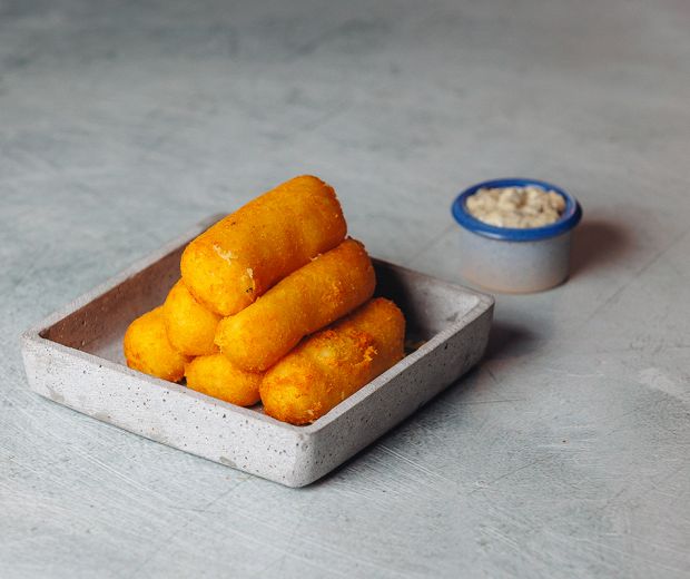 Ez az étel fogyasztható melegen, de akár hidegen, előételként is. Jól illik hozzá egy kis tárkonyos mártogató. Ehhez egy keverőtálba a tojássárgáját összekeverjük a mustárral, kissé megsózzuk, majd folyamatos kevergetés mellett fokozatosan hozzácsurgatjuk az olajat. Amint kész, belekeverjük a tejfölt és a felaprított ecetes tárkonyt. Figyeljünk arra, hogy a hozzávalók lehetőleg egyforma hőmérsékletűek legyenek. A krokett elkészítésekor a lisztet hozzákeverjük a megdermedt krumplipüréhez, annyit, amennyit felvesz és formázhatóvá válik, ízlés szerint fűszerezzük a szerecsendióval, majd kis rudacskákat vagy gombócokat formázunk belőle. Pár percig állni hagyjuk, majd lisztbe forgatjuk és forró olajban aranybarnára sütjük. Törlőpapírra szedjük ki, majd a tárkonyos mártogatóval tálaljuk. Használhatjuk köretként is.