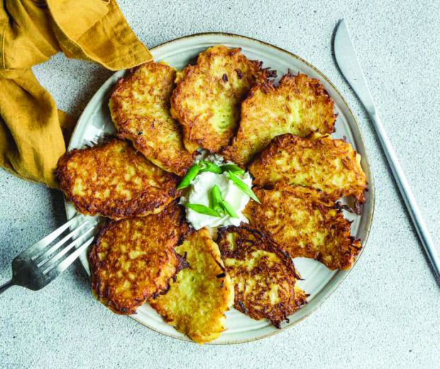 A krumplit pucoljuk meg, vágjuk kockákra, majd bő, forrásban lévő, enyhén sós vízben főzzük puhára. Szűrjük le, várjuk meg, míg kihűl, és krumplinyomóval pépesítsük. Adjuk hozzá a többi hozzávalót, a sót aszerint adagoljuk, mennyire volt sós a krumpli főzővize. Gyúrjuk össze a tésztát, ha nagyon ragacsos, adjunk hozzá egy kevés lisztet. Borítsuk egy lisztezett felületre, gyúrjuk át, majd osszuk hatfelé, mindegyik részből készítsünk egy gombócot. Vegyük magunk elé az egyik gombócot, majd nyújtsuk 3-5 mm-es téglalappá attól függően, vékonyabb vagy vastagabb lepényt szeretnénk. Vágjuk négy részbe a téglalapot. Egy tapadásmentes serpenyőbe öntsünk kevés olajat, vagy adjunk hozzá kevés vajat. Ha felforrósodott, tegyünk bele annyi lepényt, amennyi kényelmesen elfér. Süssük aranybarnára az alját, majd fordítsuk meg és süssük, míg a másik fele is szép színt kap. Tegyük papírtörlővel bélelt tálcára, majd fedjük le, hogy ne száradjon ki. Bármilyen mártogatós jól illik hozzá.