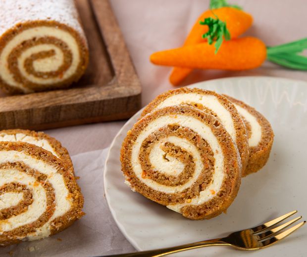 A piskótához a puha vajat a cukorral habosítani kezdjük, majd hozzáadjuk a tojásokat, és tovább habosítjuk. A lisztet a sütőporral, a fűszerekkel és a sóval elkeverjük. A répát apró lyukú reszelőn lereszeljük, majd a tojásos-vajas keverékhez adjuk, végezetül pedig beleforgatjuk az előzőleg összekavart száraz hozzávalókat is. Az így kapott masszát egy sütőpapírral bélelt tepsire téglalap alakban kenjük körülbelül fél centiméteres vastagságban. 180 fokos előmelegített sütőben nagyjából 12-15 perc alatt készre sütjük, aztán még forrón lehúzzuk a sütőpapírról, feltekerjük egy konyharuhába, és hagyjuk kihűlni. A krémhez minden hozzávalót egy habüstbe teszünk, majd robotgéppel habosítani kezdjük, amíg egy selymes, tartós krémet kapunk. Ha kihűlt a piskóta, óvatosan letekerjük, a krémet egyenletesen elkenjük rajta, utána újból feltekerjük és egy fóliába csavarjuk, így tesszük a hűtőbe legalább négy órára. Tálalás előtt szórjuk meg porcukorral, majd szeleteljük fel egy jó éles késsel.