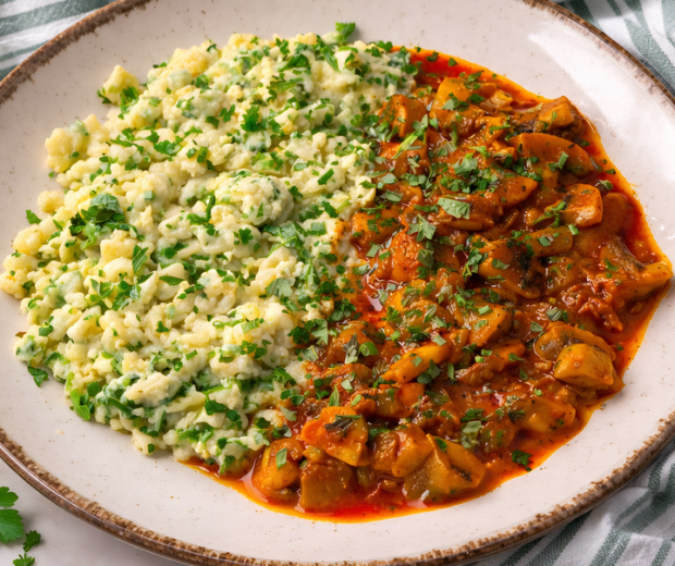 Tojásos nokedli gombapaprikással