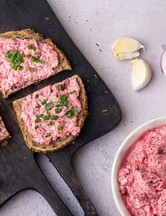 A sörtészta kelési ideje alatt elkészítjük a tört zöldborsót. Lobogó sós vízbe tesszük a fagyasztott zöldborsót, és kb. 5 percig gyöngyöző vízben főzzük. (Csak annyi vizet tegyünk fel, hogy a zöldborsót ellepje.) Leszűrjük, hozzáadjuk a vajat és a balzsamecetet, majd krumplitörővel darabosra törjük. A visszamaradt főzővízzel, esetleg alaplével és vajjal korrigálhatjuk a köret állagát.